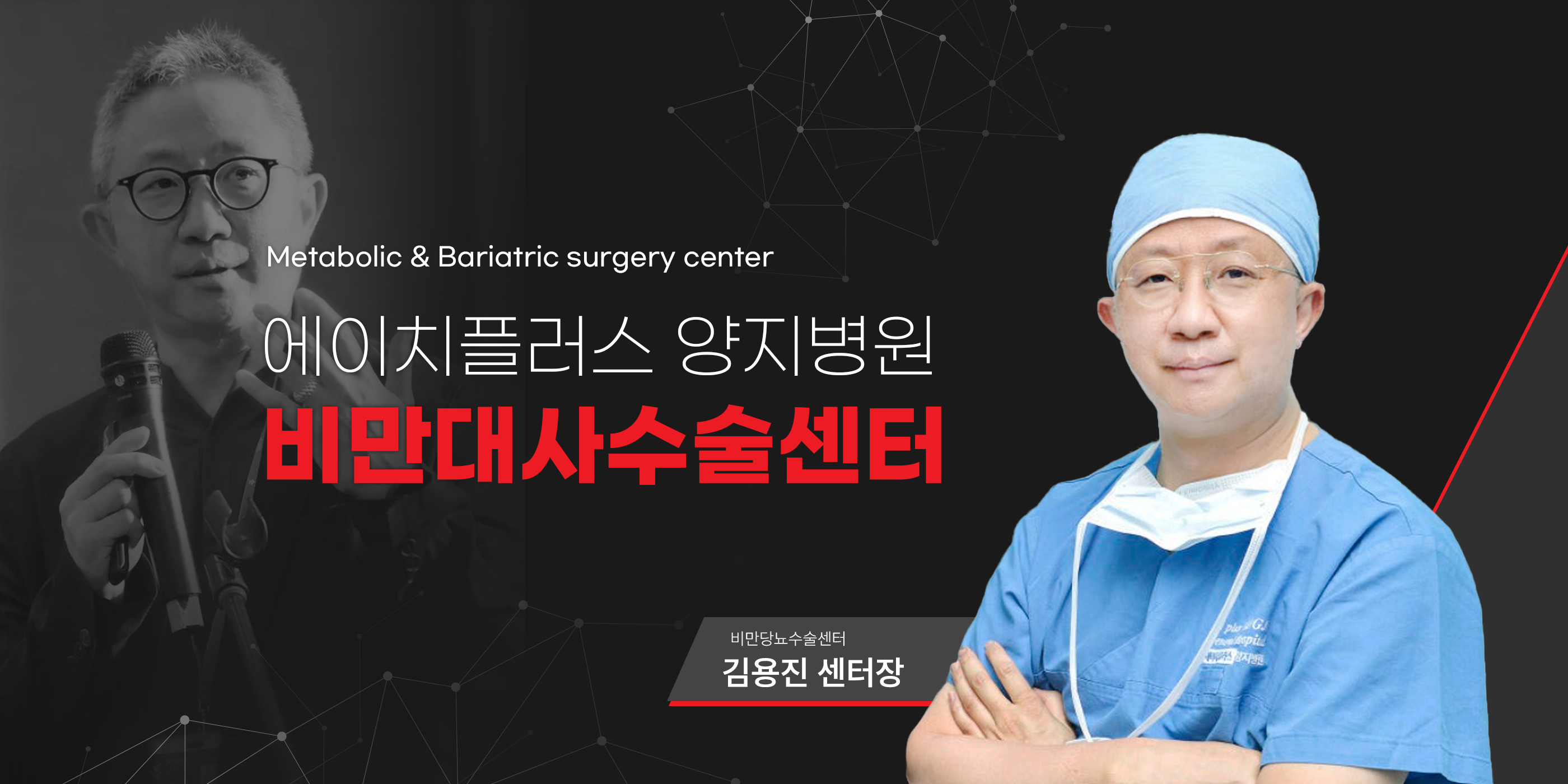 에이치플러스 양지병원 비만당뇨수술 센터(Metabolic & Bariatric surgery center)에서는 고도비만 분야의 1인자인 前 순천향대학교 서울병원 김용진 교수를 초빙해 비만당뇨수술 센터를 개설했습니다. 세계적으로 인정받는 전문 의료진의 안전하고 효율적인 수술로 고도비만과 당뇨병 등 대사질환 환자들의 삶의 질을 개선합니다. 풍부한 경험의 전문인력으로 구성된 비만당뇨수술 전담팀(전문의, 간호사, 임상 영양사)이 환자분의 성공적인 수술결과를 위해 수술 전,후 및 사후관리까지의 전 과정을 함께합니다
